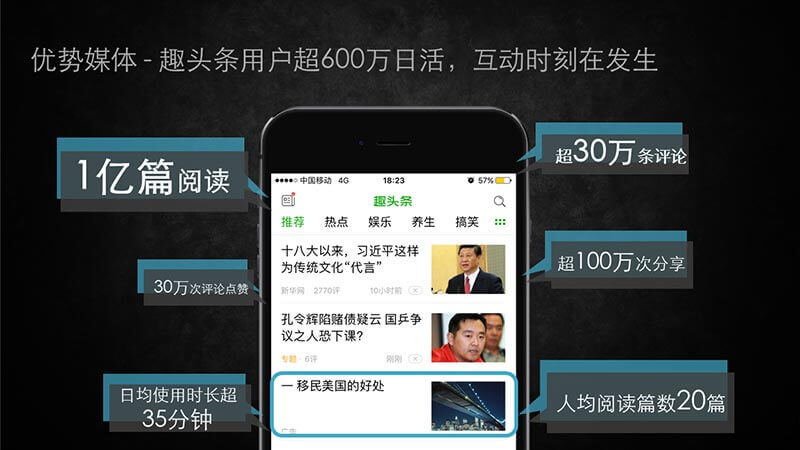 原創內容:通過與媒體和PGC的合作,趣頭條獲得原創內容。