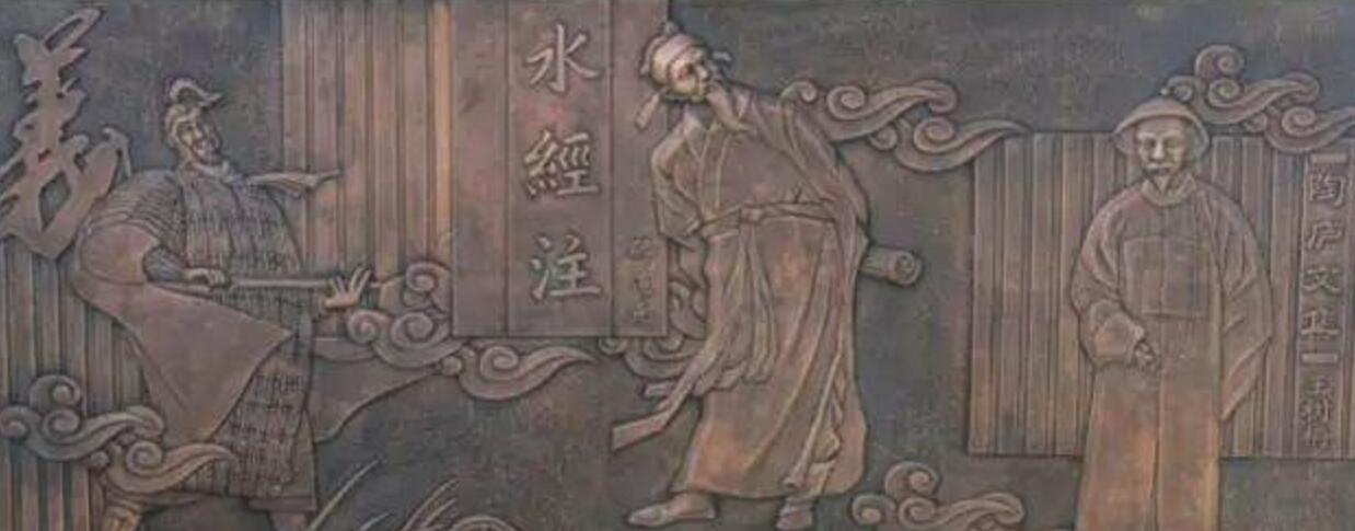 左側表現高碑店人杰,在高碑店眾多歷史人物中選擇樊於期、酈道元、王樹柟為代表,加以竹簡形式雕刻人物簡介與人物典故著作;